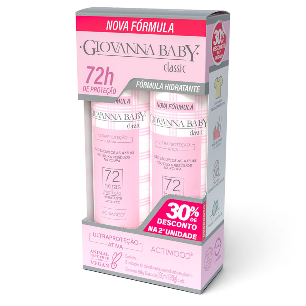 Desodorante Giovanna Baby Classic Aerossol Ultra Proteção Ativa Antiperspirante 72h com 2 Unidades de 150ml cada