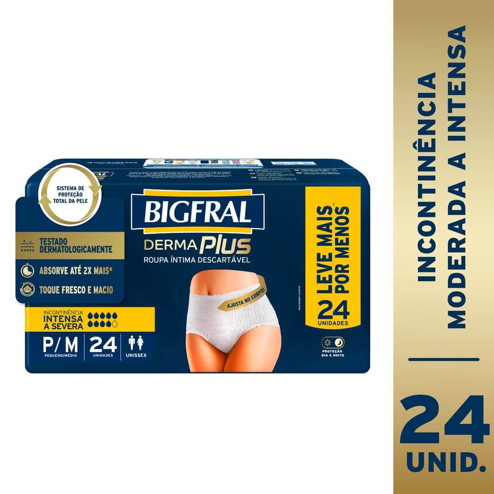 Roupa Íntima Descartável Unissex Bigfral Derma Plus Tamanho P/M 24 Unidades Leve Mais Por Menos