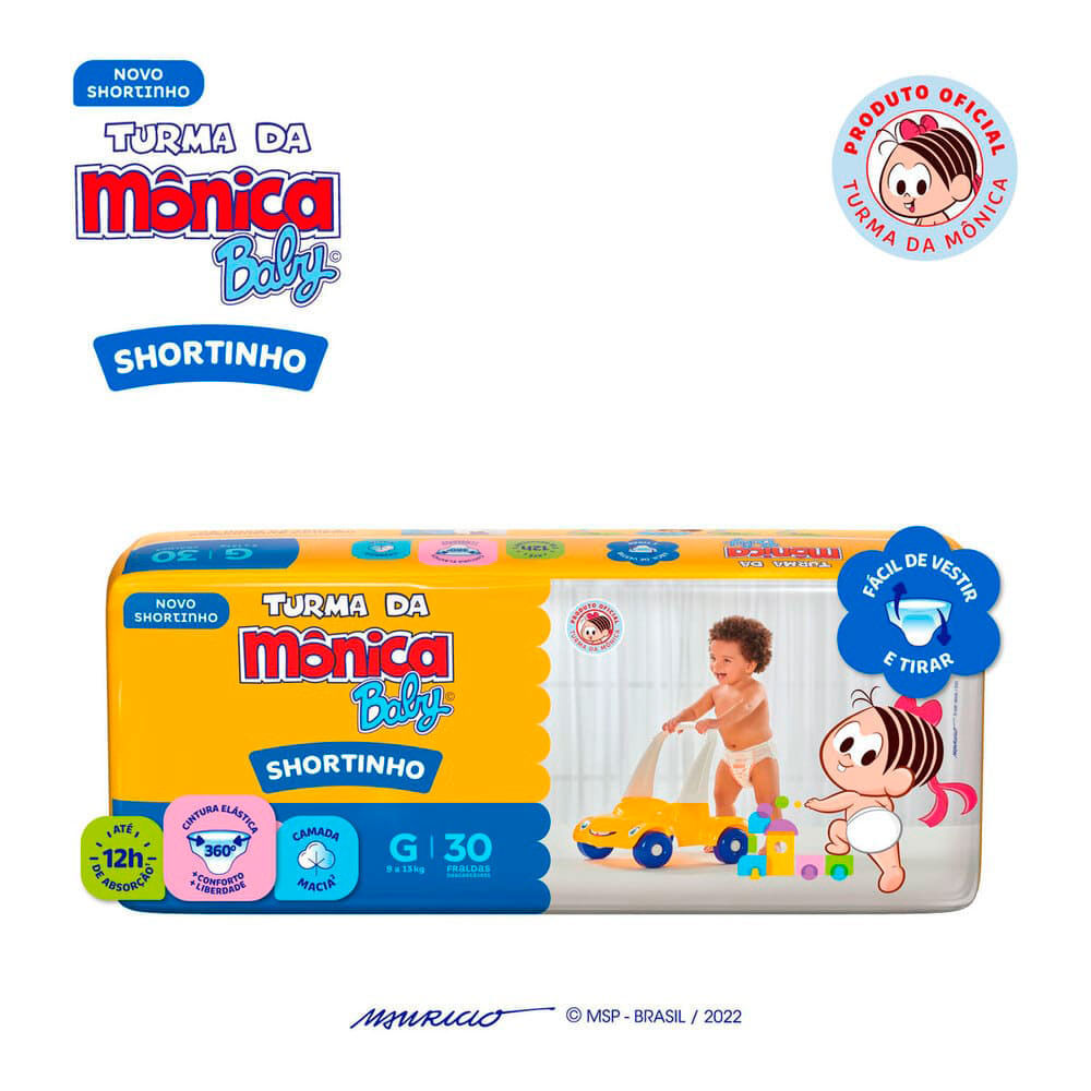 Fralda Shortinho Turma da Mônica Baby Tamanho G com 30 Fraldas Descartáveis