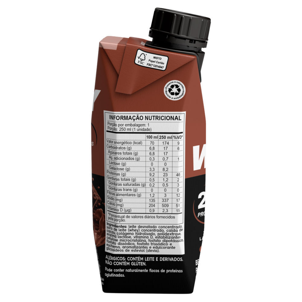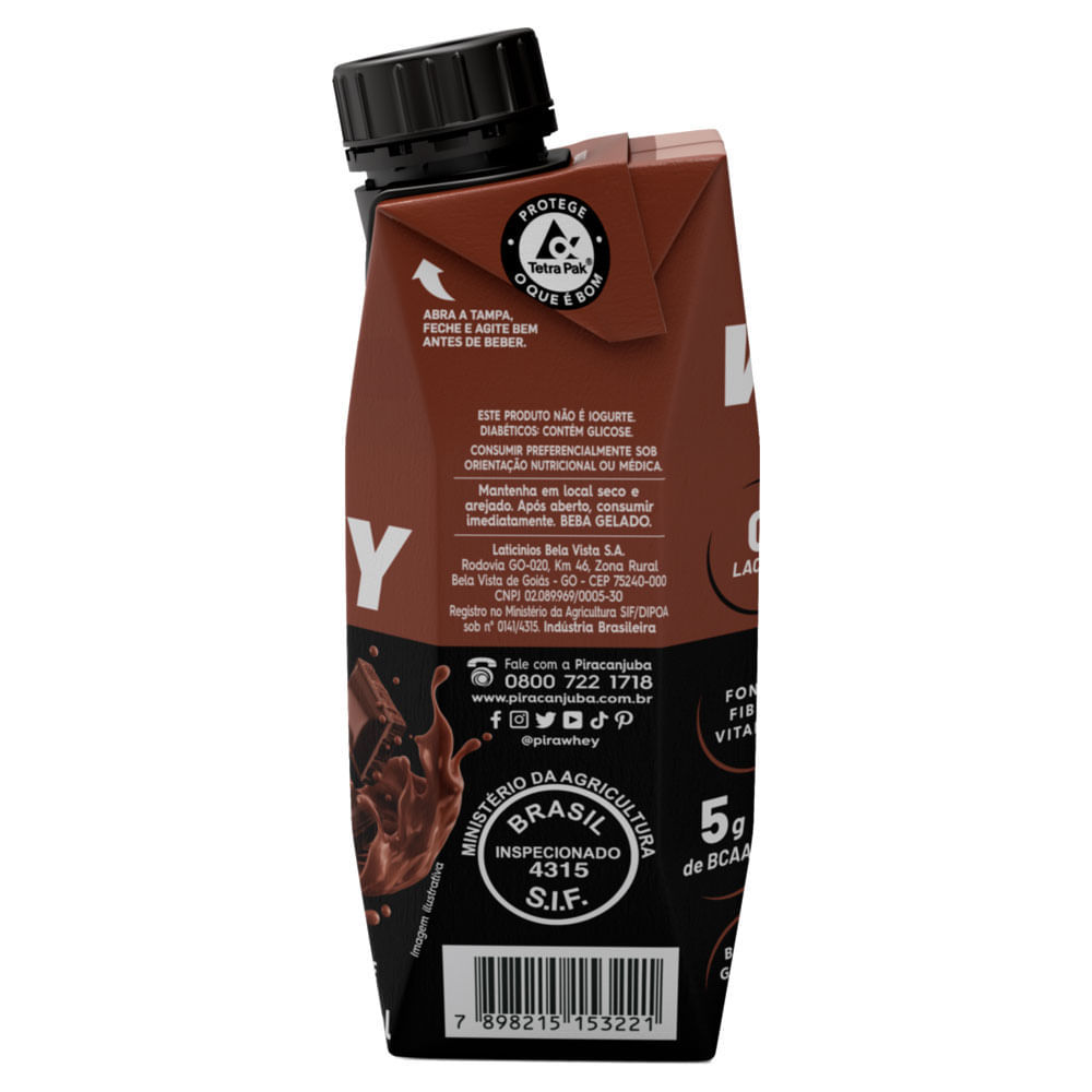 Bebida Láctea Piracanjuba Whey Zero Lactose com 23g de Proteína Sabor Cacau 250ml