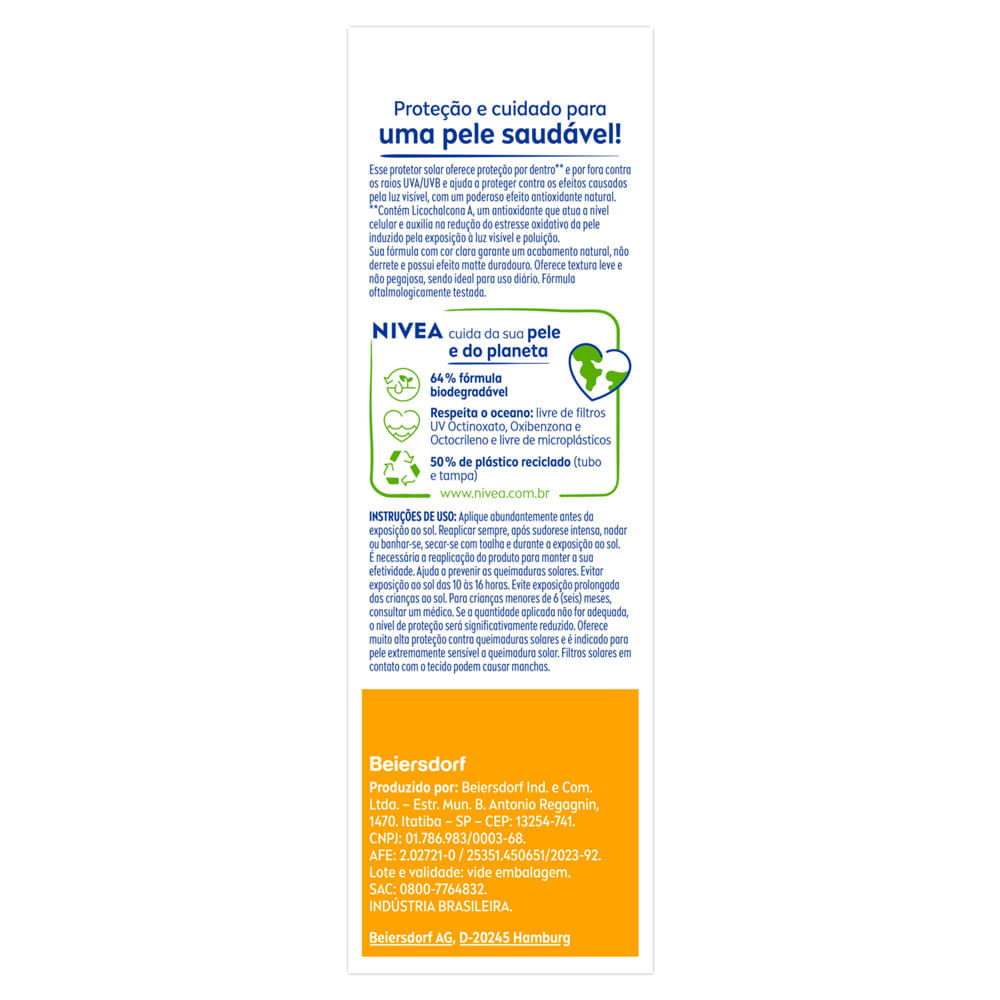 Protetor Solar Nivea Sun UV Face Controle de Oleosidade FPS 60 Cor Clara 50ml