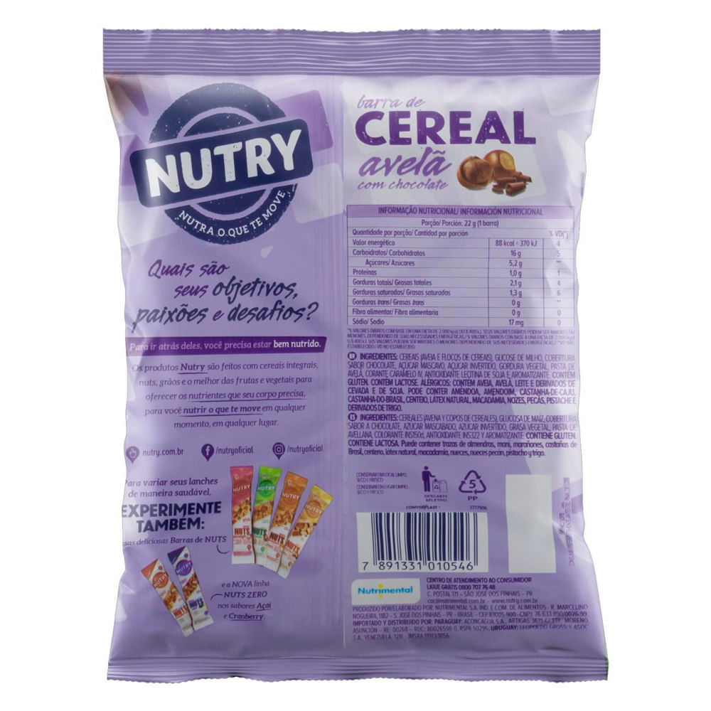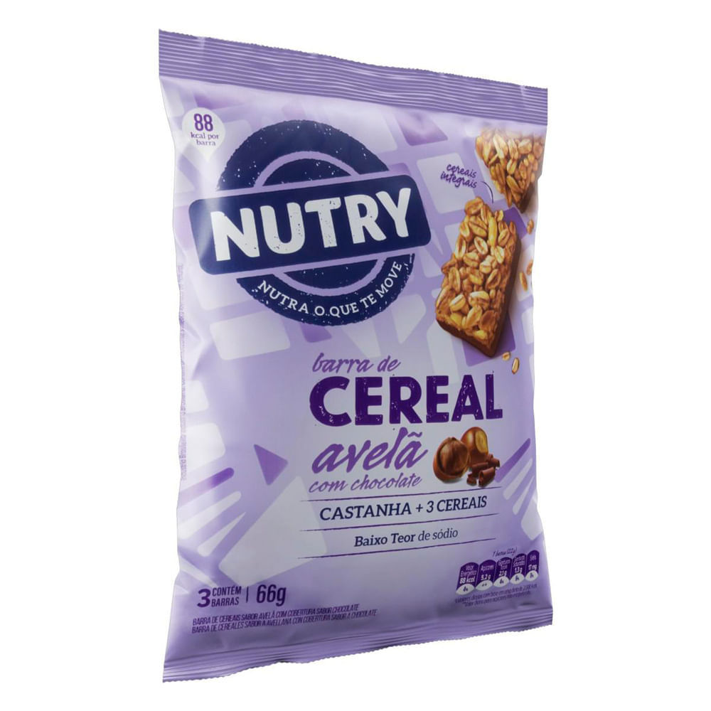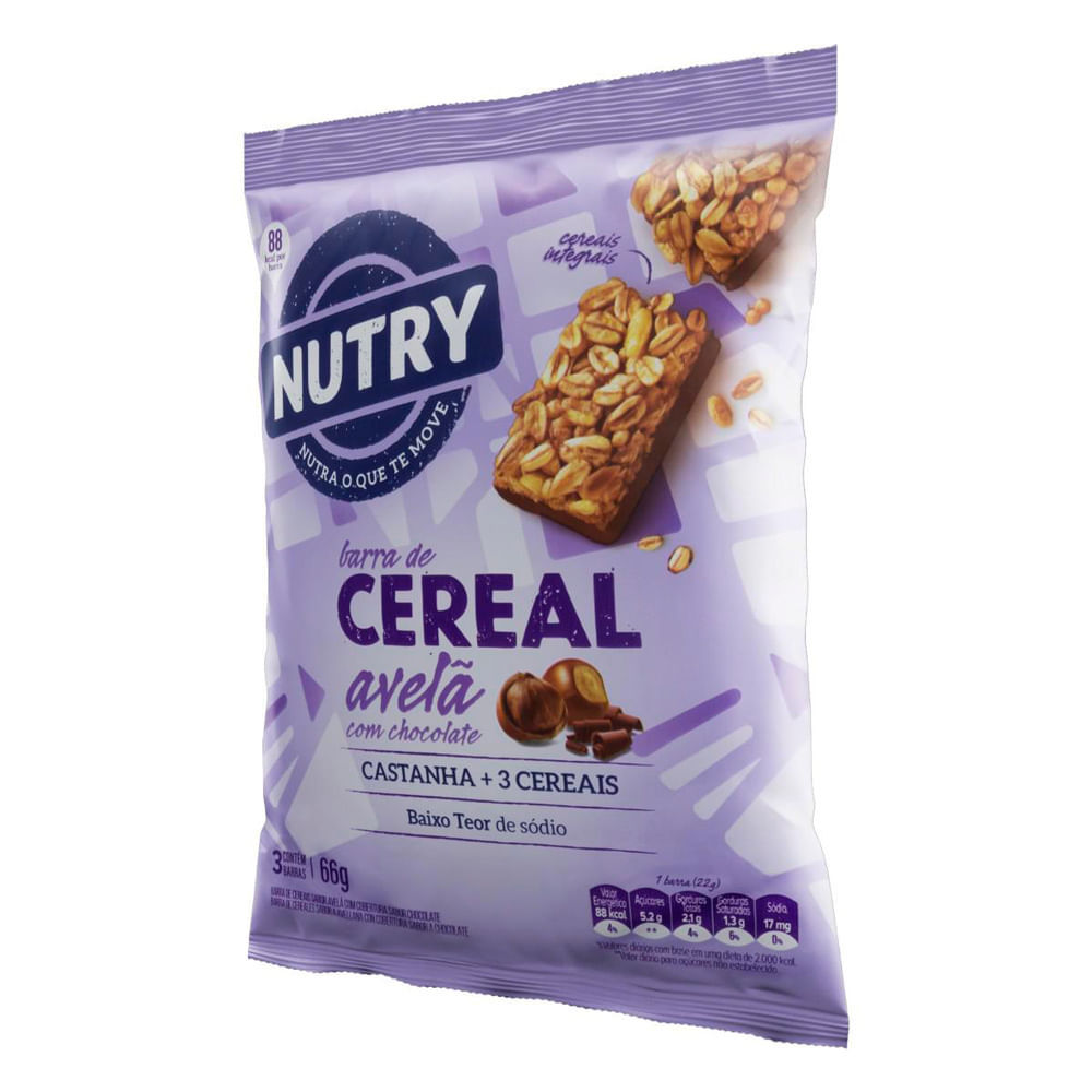 Barra de Cereal Nutry Avelã com Chocolate com 3 Unidades de 22g Cada