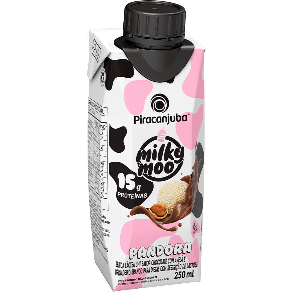 Bebida Láctea Piracanjuba Milky Moo Pandora Sabor Chocolate com Avelã e Brigadeiro Branco 250ml