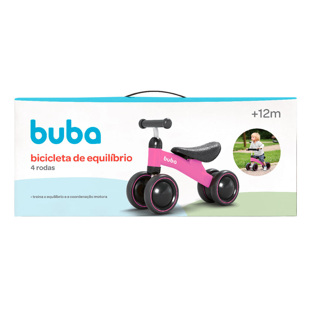 Bicicleta de Equilíbrio Buba +12 Meses 4 Rodas Cor Rosa 1 Unidade