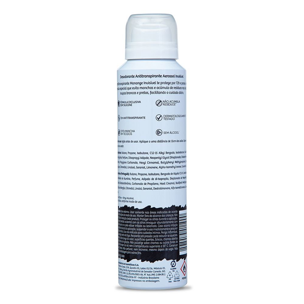 Desodorante Aerossol Antitranspirante Monange Feminino Invisível 150ml