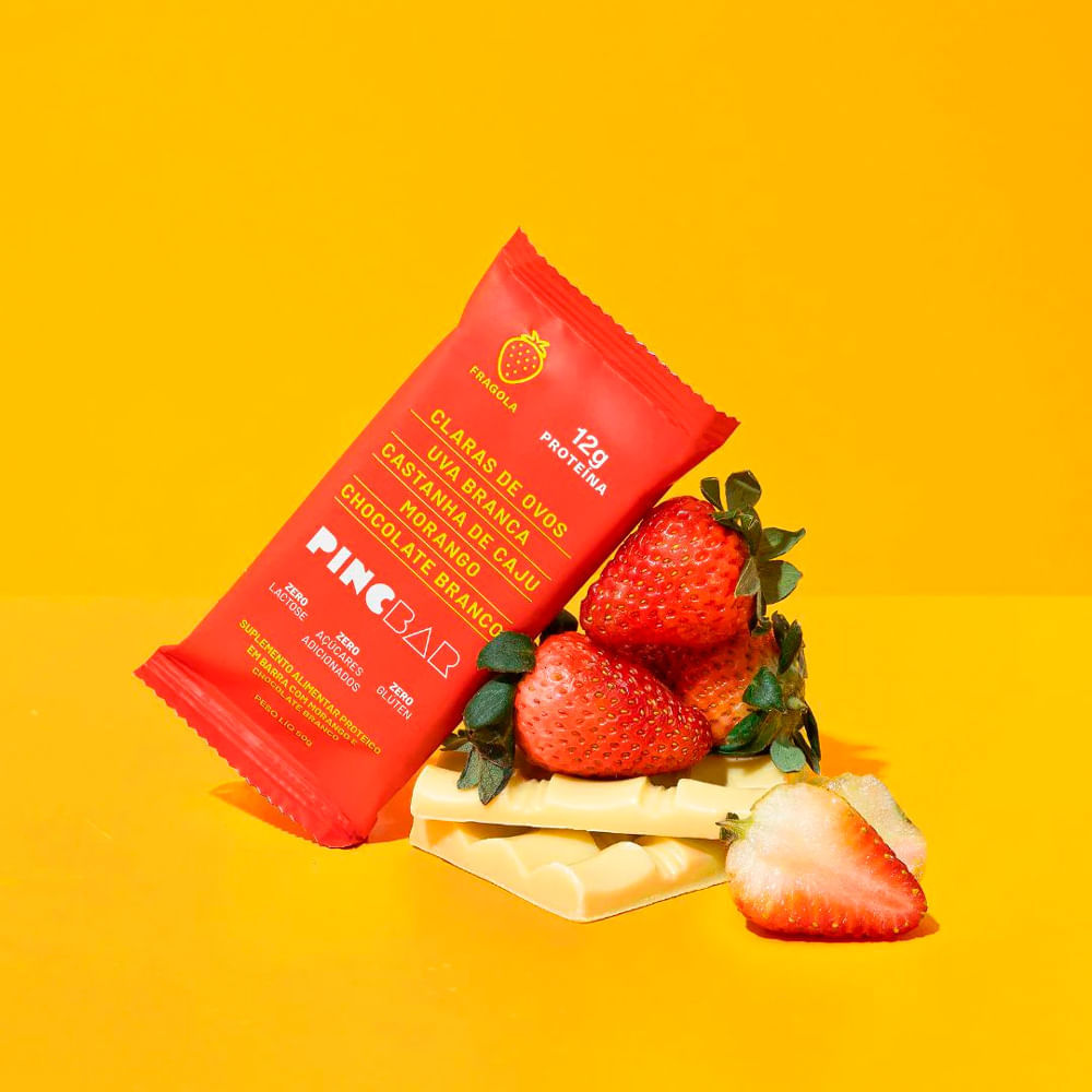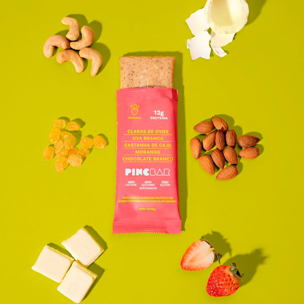 Barra de Proteína PincBar Fragola com 12g de Proteína Sabor Morango com Chocolate Branco 50g