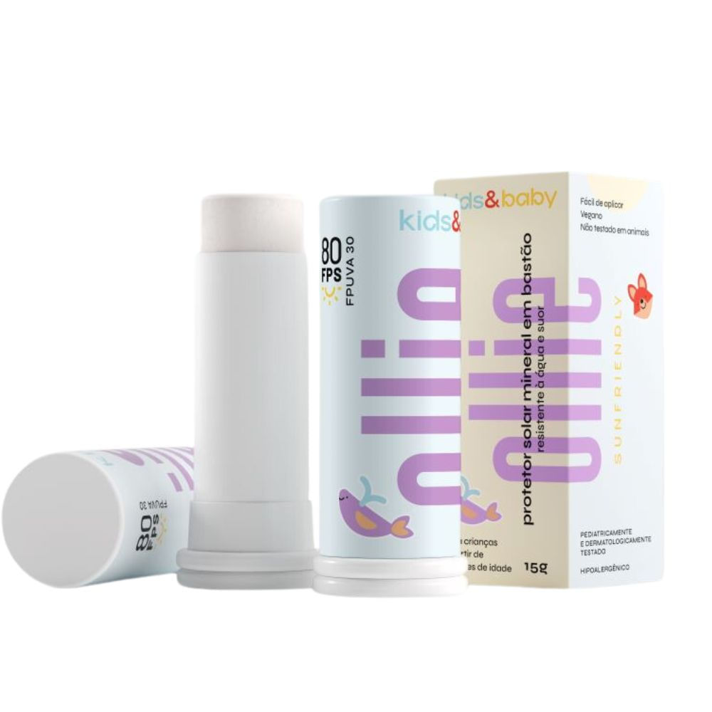 Protetor Solar Ollie FPS80 Kids&Baby Mineral Bastão 15g