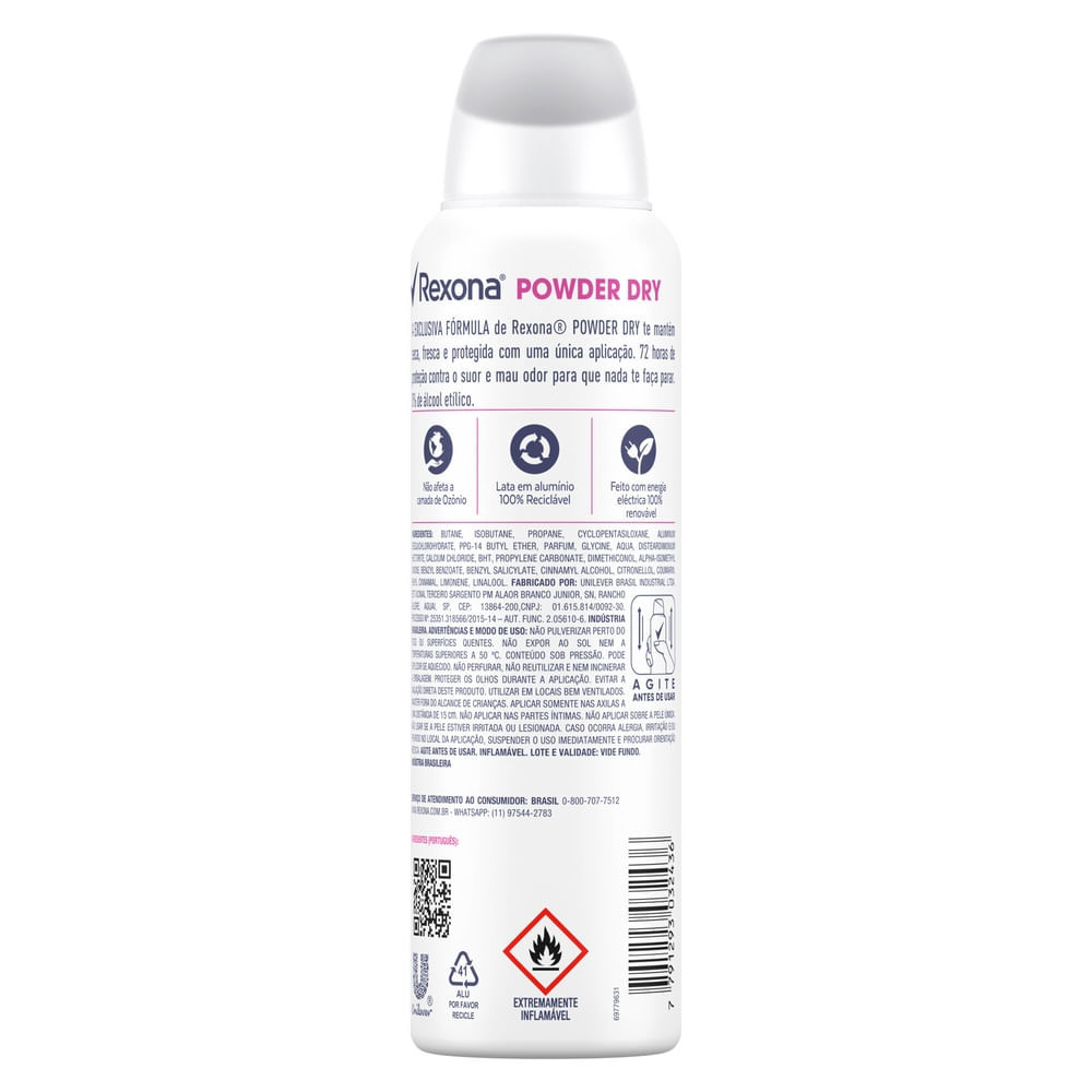 Desodorante Antitranspirante Aerosol Feminino Rexona Powder Dry 72 horas 150ml