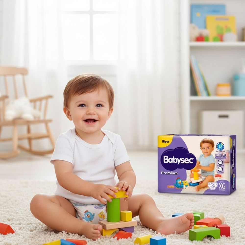 Fralda Infantil Babysec Premium Hiper XG com 56 Unidades