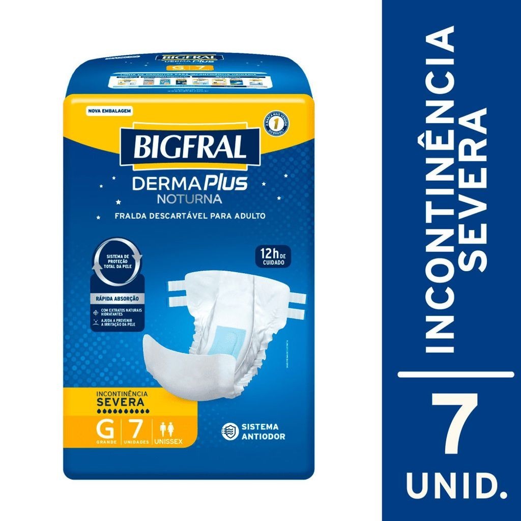 Fralda Bigfral Derma Plus Noturna G 7 Unidades