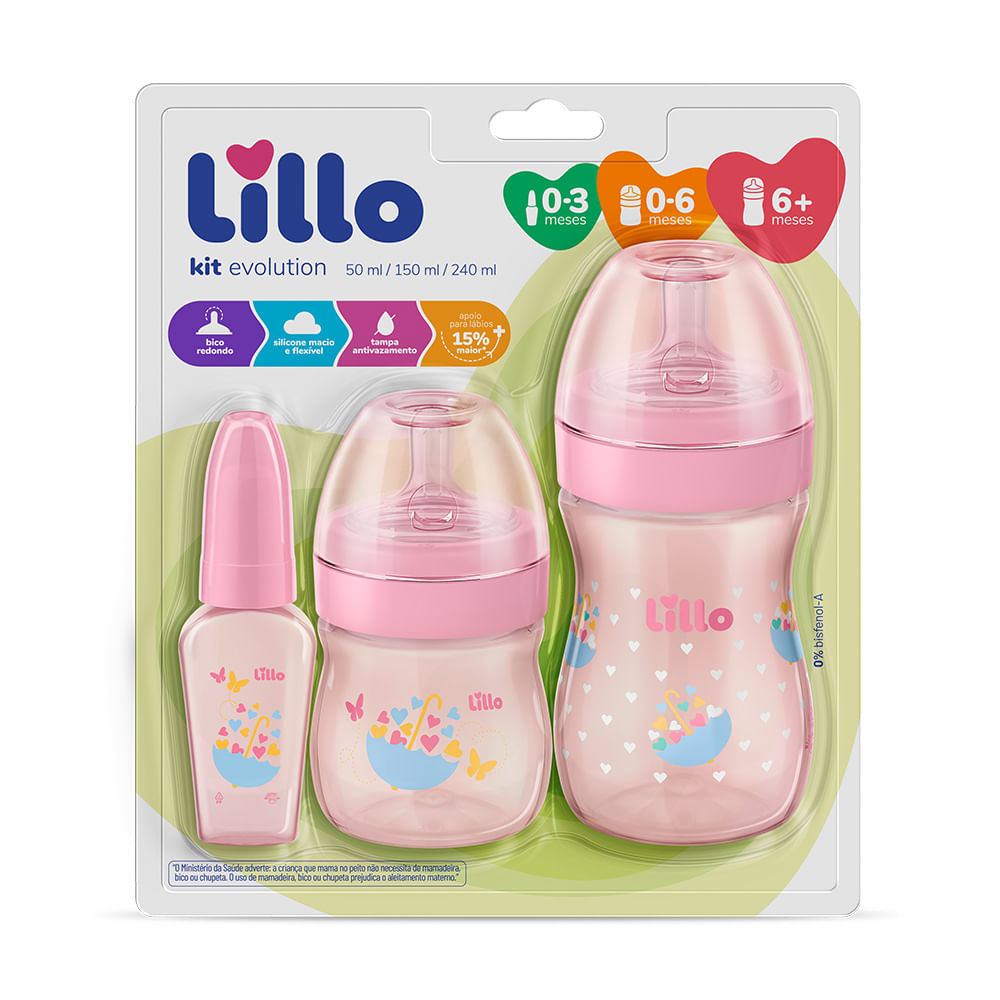 Kit de Mamadeiras Lillo Primeiros Passos Cor Rosa com 3 Unidades Ref: 604631