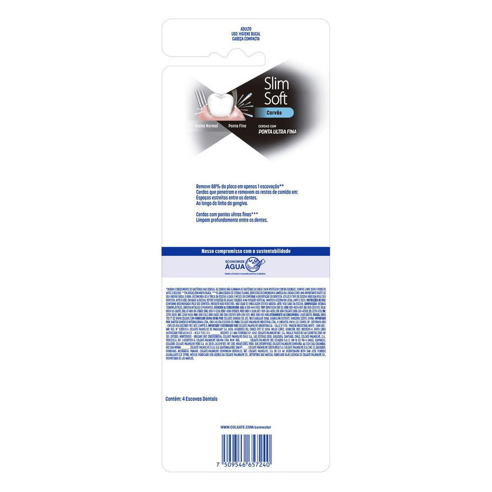 Escova Dental Colgate Slim Soft Black Macia Cores Sortidas 4 Unidades