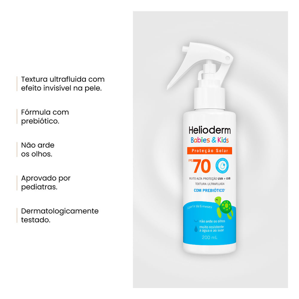 Protetor Solar Helioderm Babies e Kids FPS 70 com Prebiótico Spray 200ml