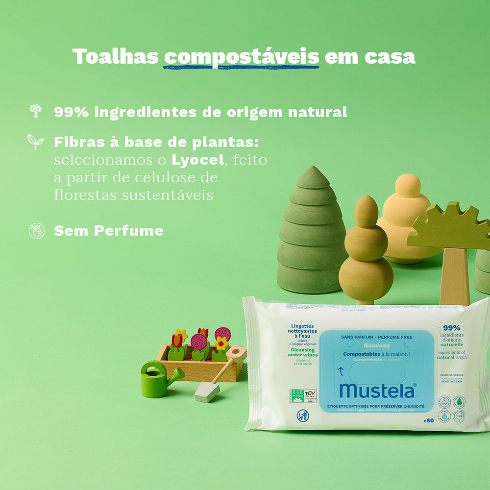 Toalhas Umedecidas Mustela Compostáveis Sem Perfume 60 Unidades