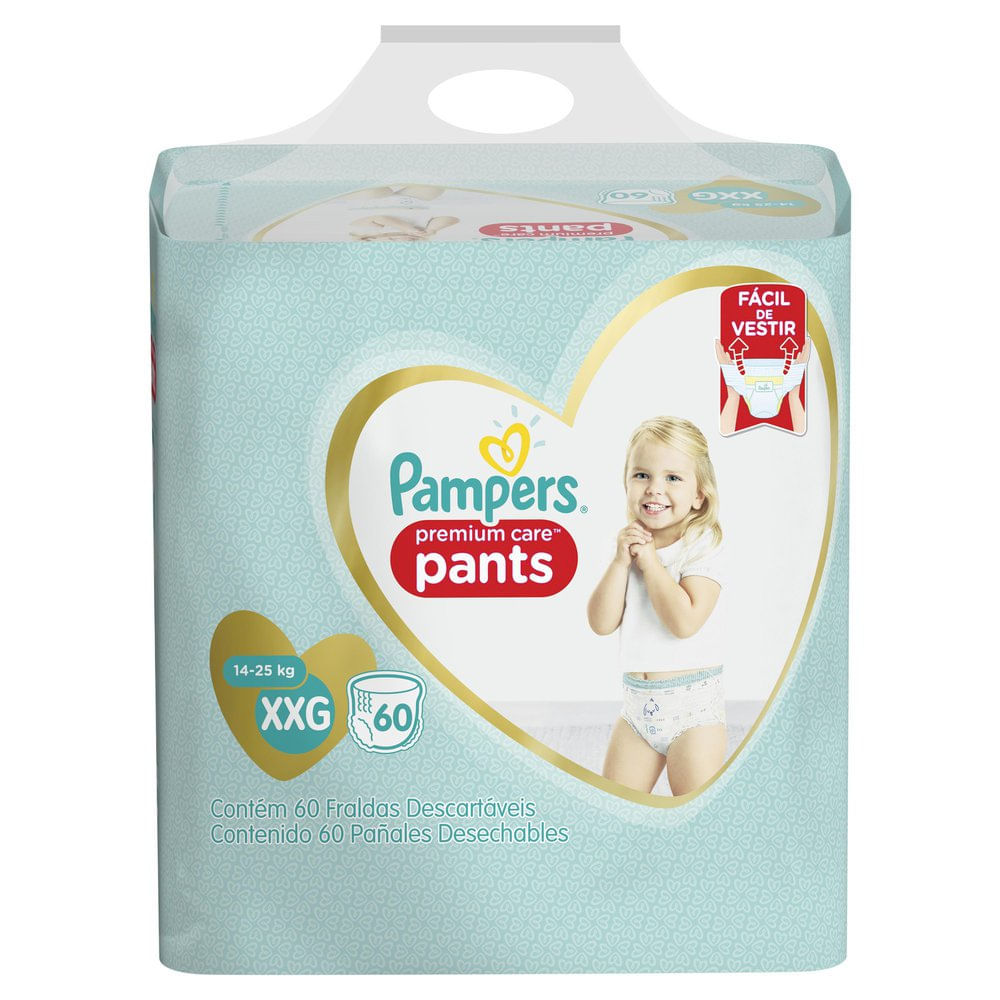 Fralda Infantil Pampers Premium Care Pants Tamanho XXG 60 Unidades Descartáveis