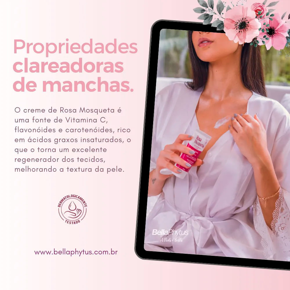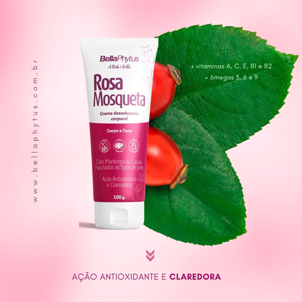 Creme Desodorante Corporal Rosa Mosqueta Bellaphytus para Todo Tipo de Pele 100ml