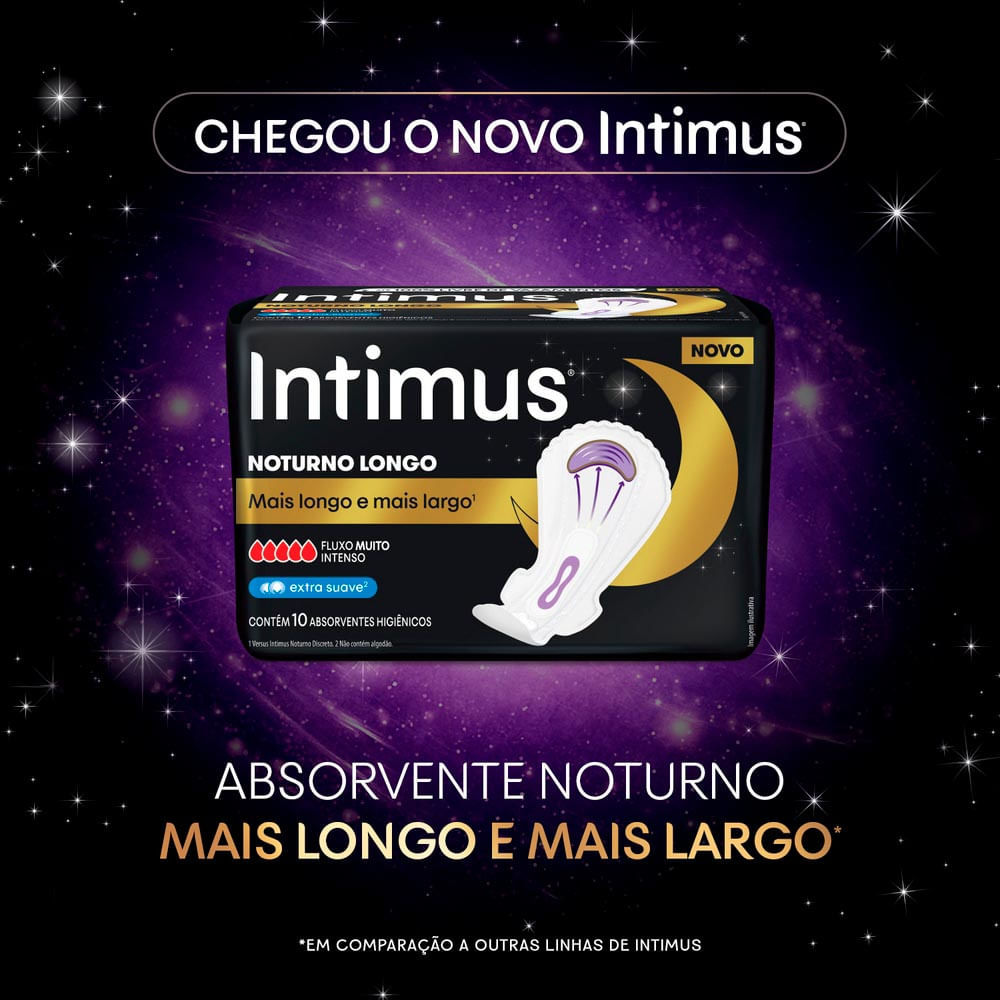 Absorvente Intimus Noturno Longo e Mais Largo Extra Suave Fluxo Muito Intenso com Abas 10 Unidades