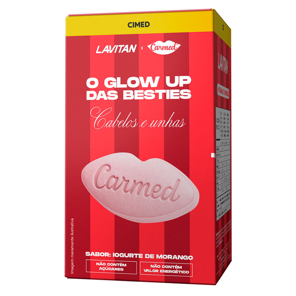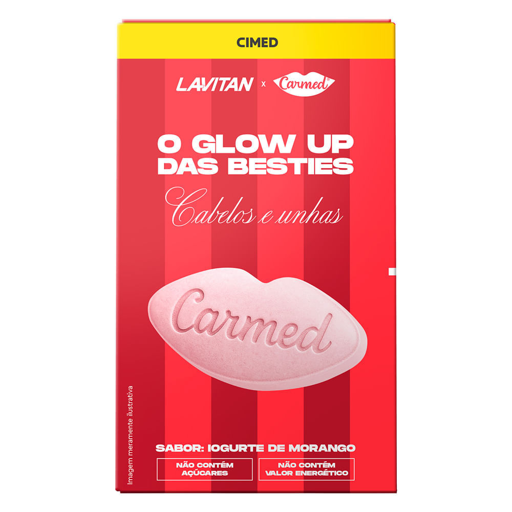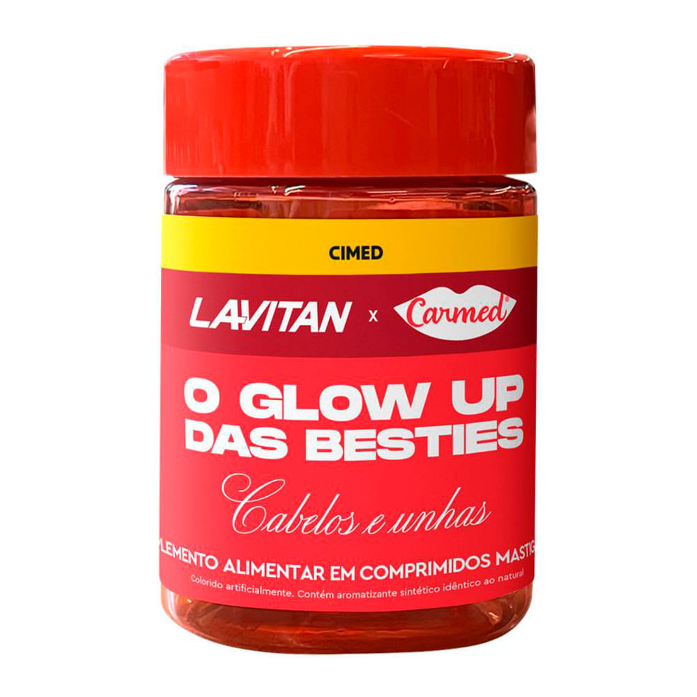Lavitan Carmed O Glow Up Das Besties Cabelos e Unhas Sabor Iogurte de Morango 60 Comprimidos Mastigáveis