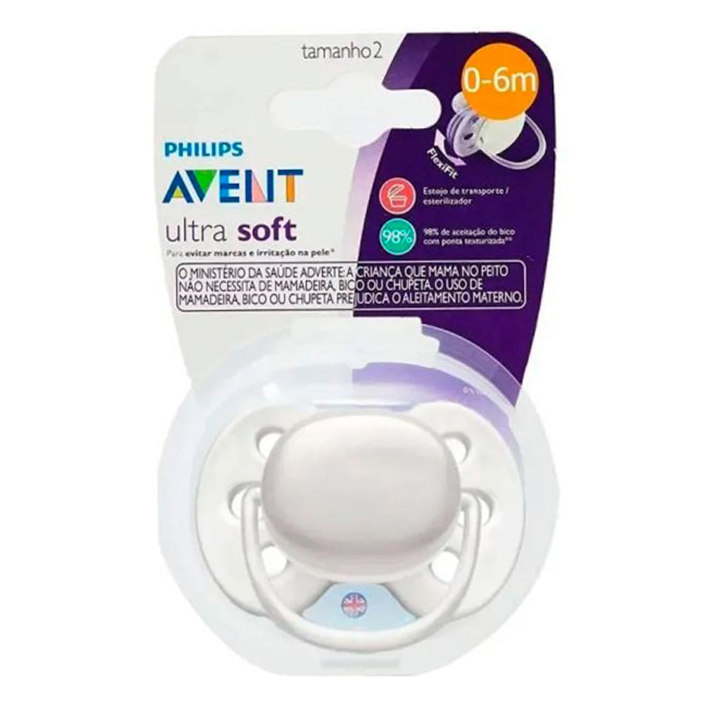 Chupeta Philips Avent Ultra Soft Tamanho 2 de 0 a 6 Meses Branco 1 Unidade