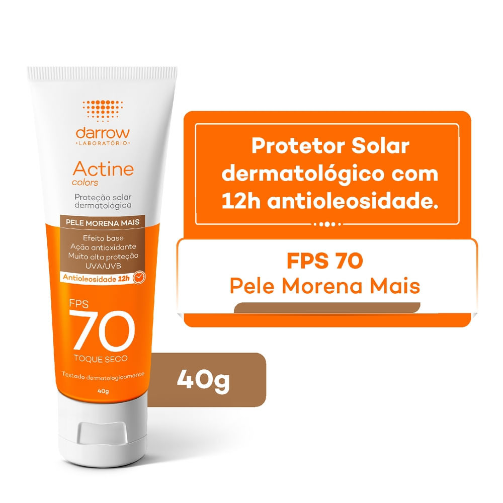 Protetor Solar Actine Colors Pele Morena Mais FPS 70 Toque Seco 40g