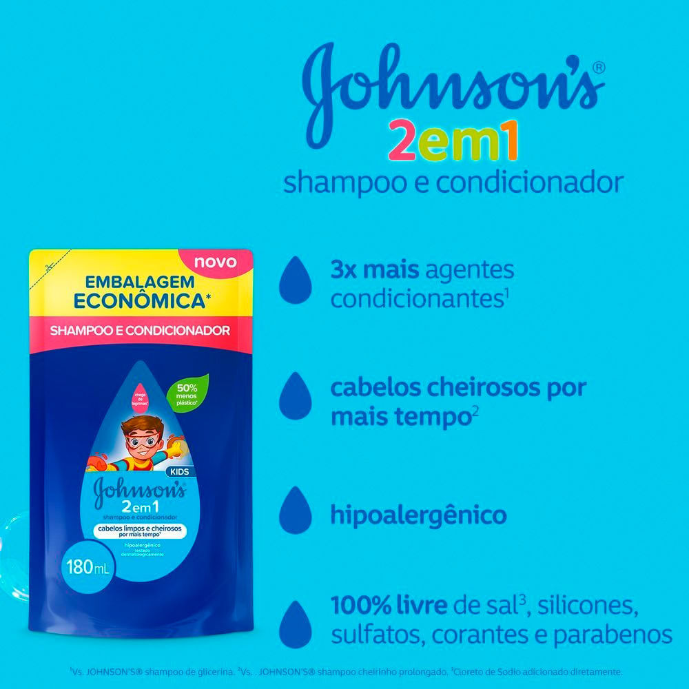 Shampoo e Condicionador Johnson's Kids 2 em 1 Refil 180ml