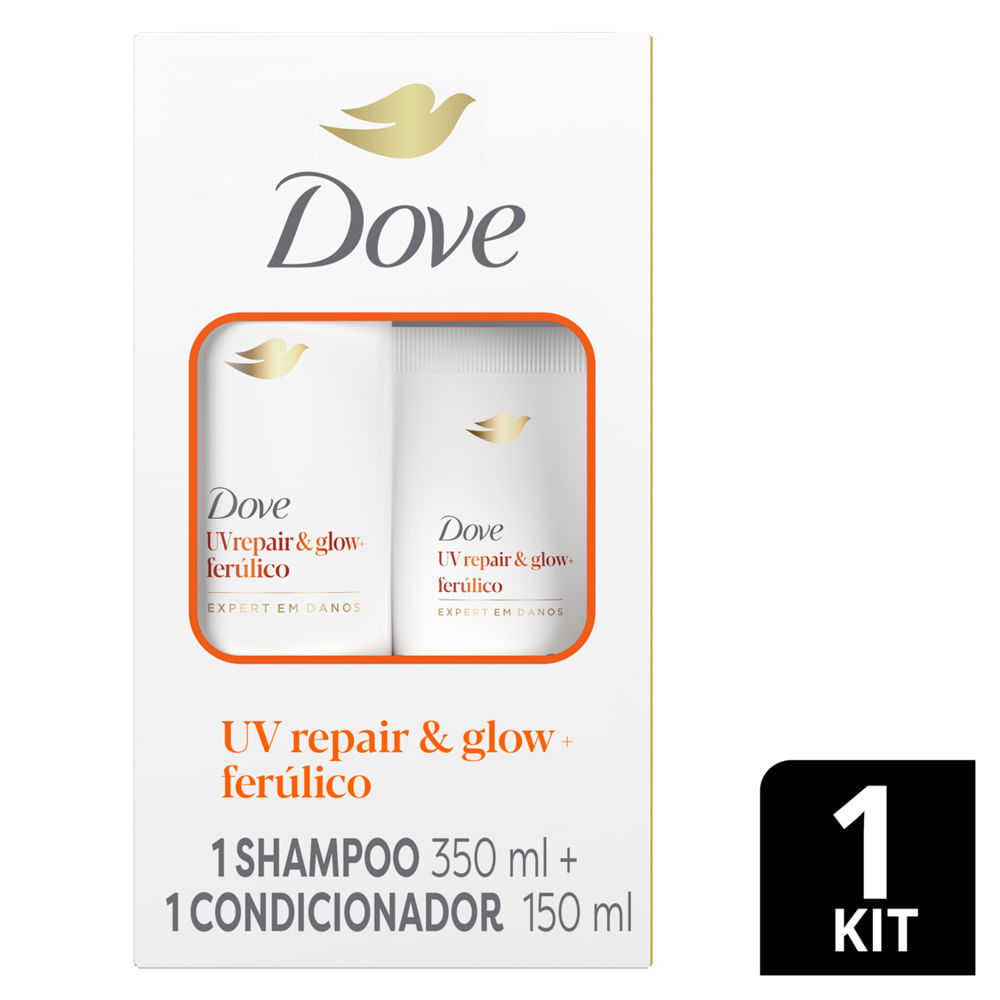 Kit Dove UV Repair e Glow Ferúlico Expert em Danos Shampoo 350ml e Condicionador 150ml
