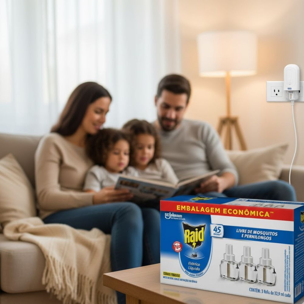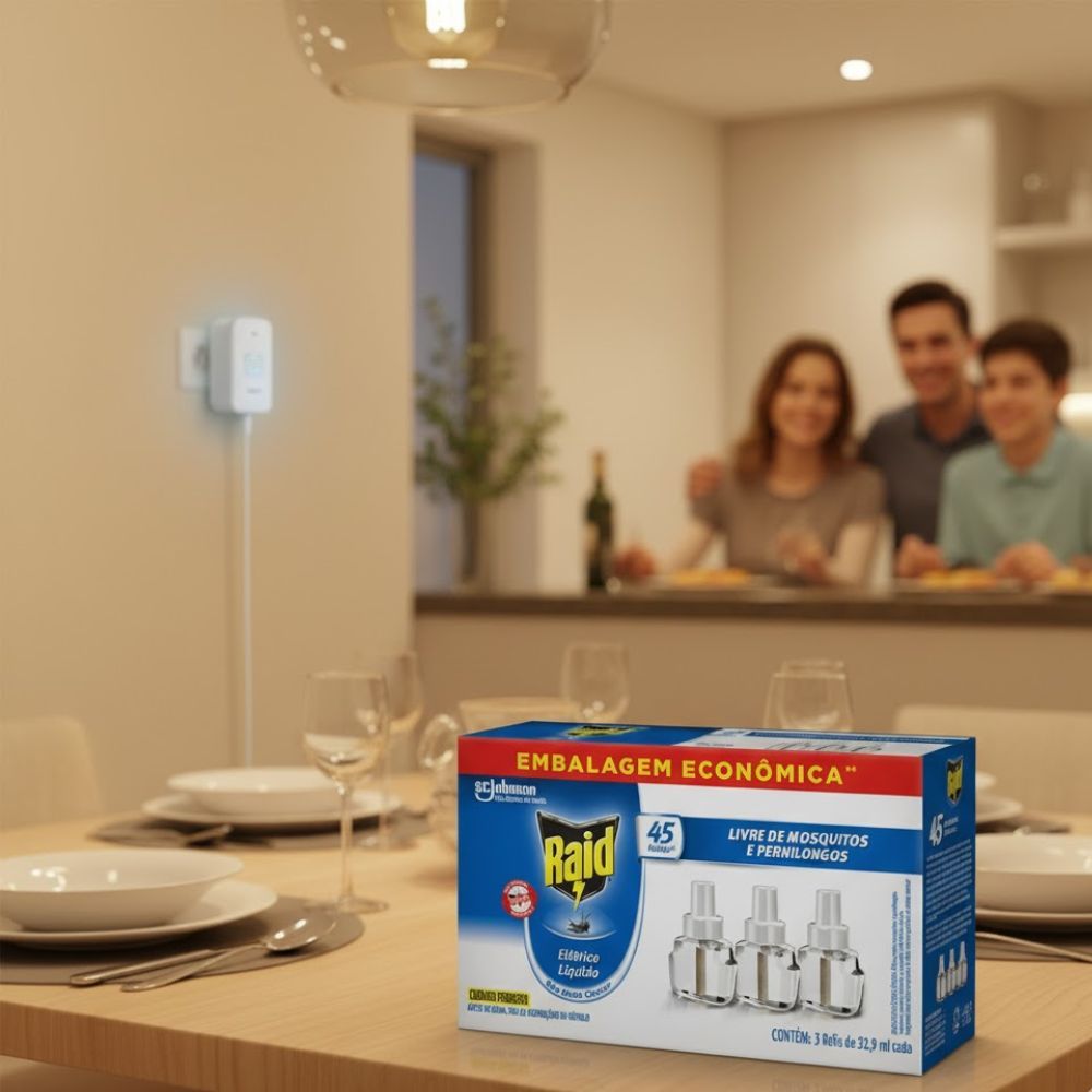 Repelente Elétrico Líquido Raid 45 Noites Refil 3 Unidades de 32,9ml Cada