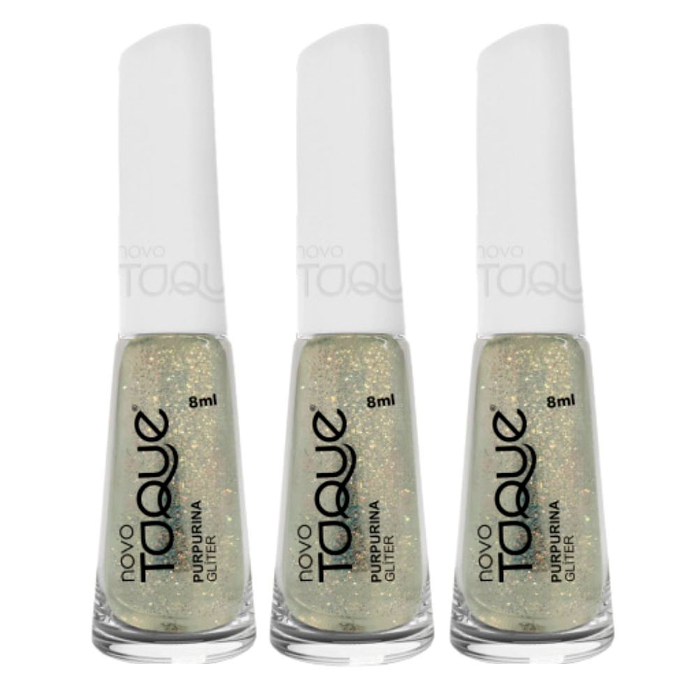 Kit 3 Esmalte Novo Toque Purpurina Gliter 8ml