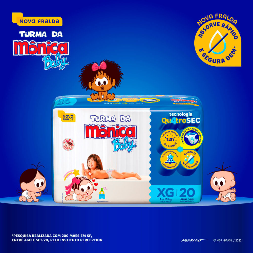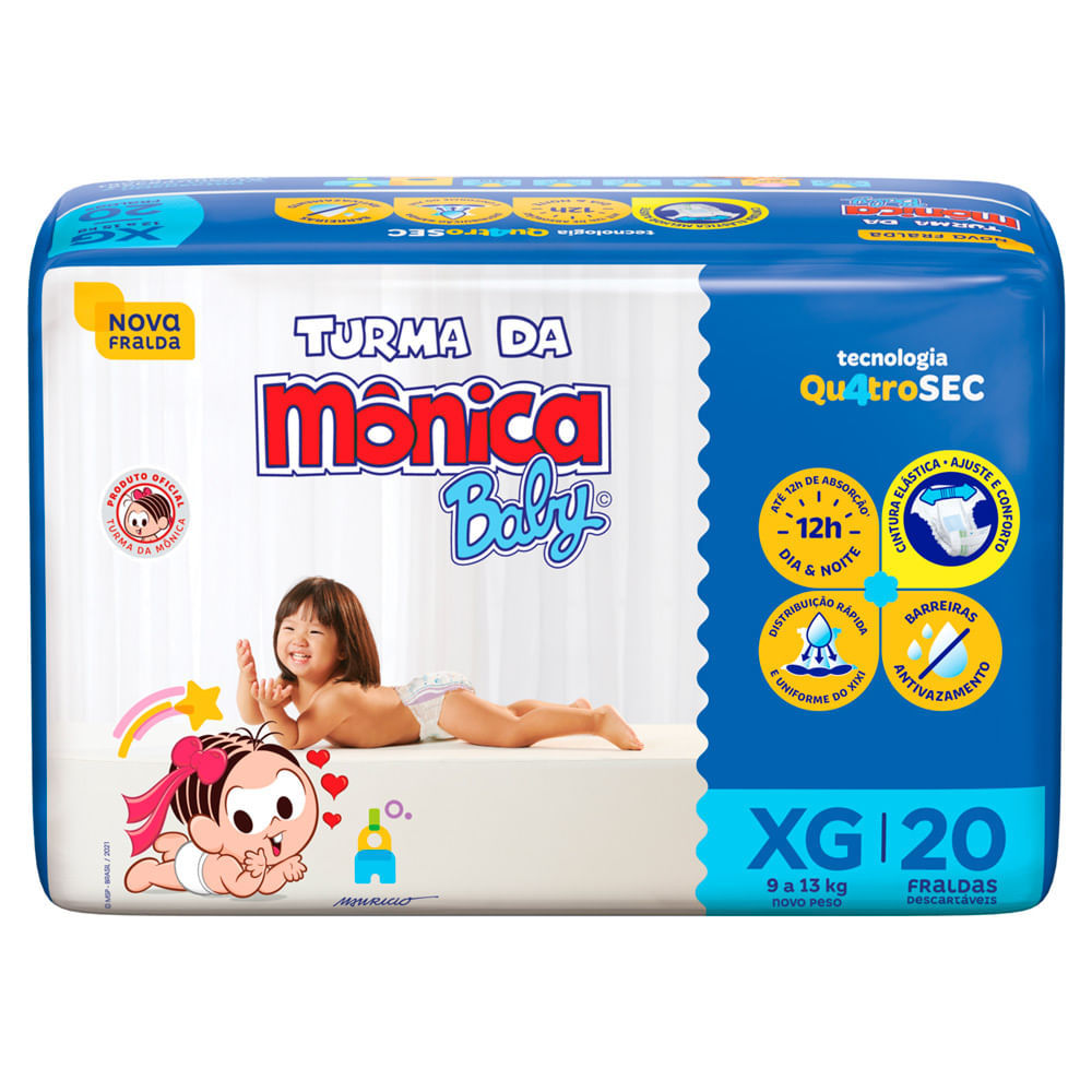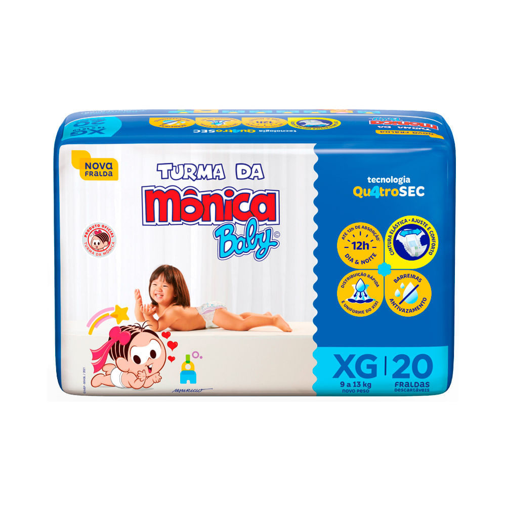 Fralda Turma da Mônica Baby Jumbo Tamanho XG 20 Unidades Descartáveis
