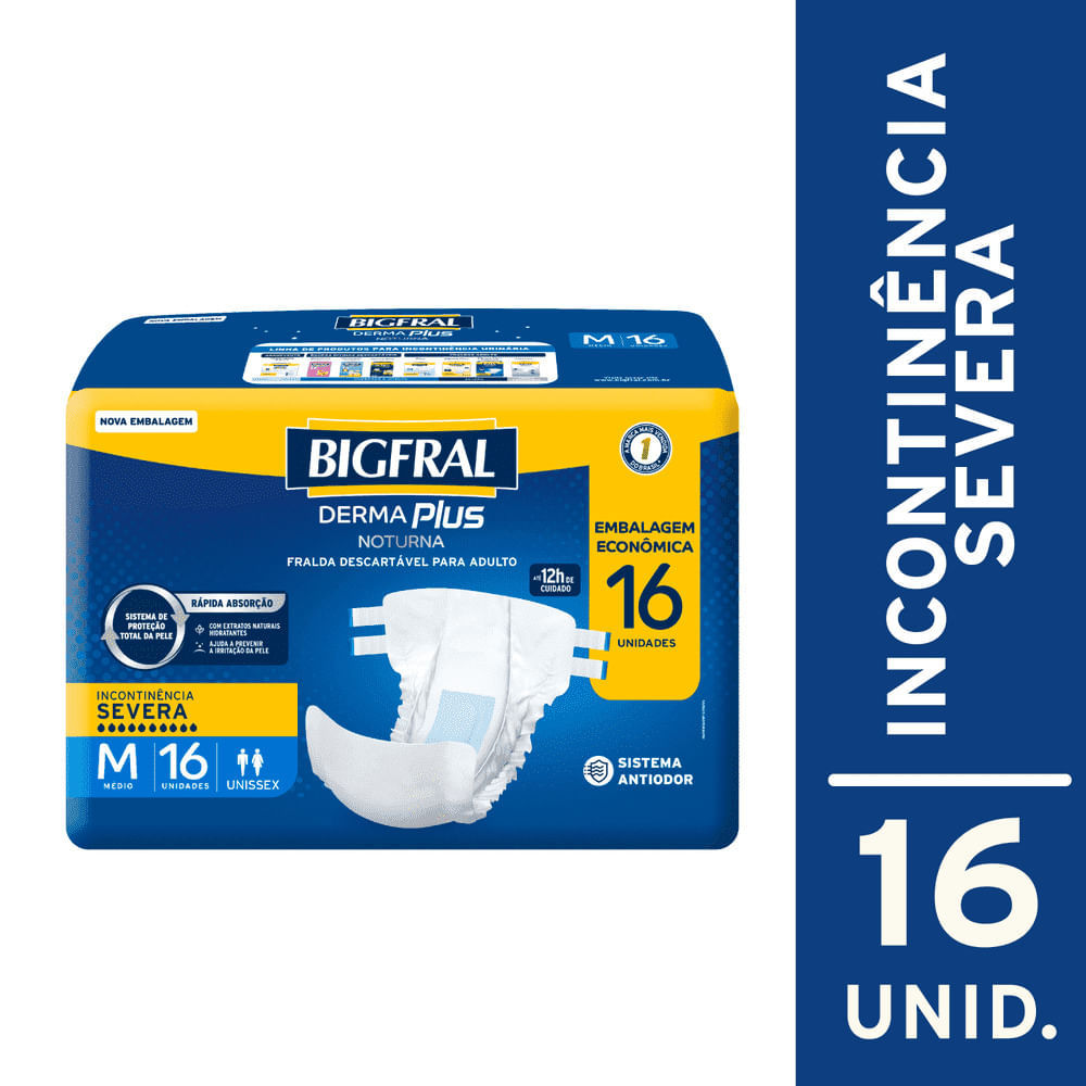 Fralda Geriátrica Bigfral Derma Plus Noturna Unissex Tamanho M com 16 Unidades