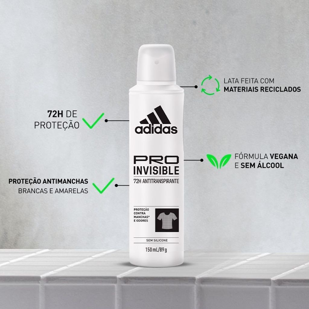 Desodorante Aerossol Antitranspirante Adidas Feminino Pro Invisible 150ml
