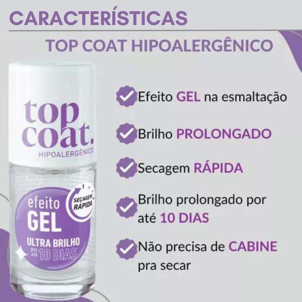 Esmalte Blant Top Coat Efeito Gel Ultra Brilho 8,5Ml
