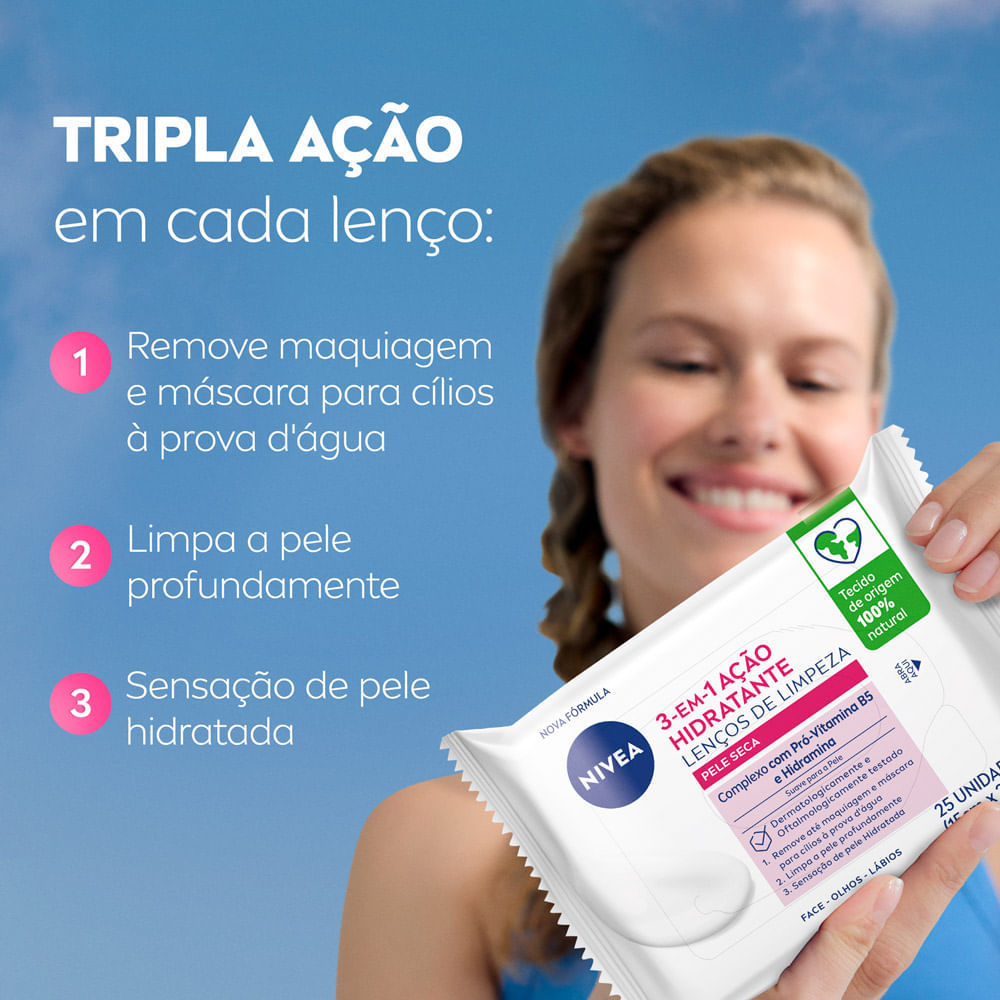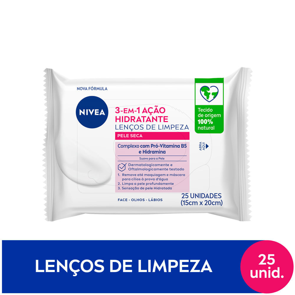 Lenço de Limpeza Nivea Demaquilante Ação Hidratante 3 em 1 25 Unidades