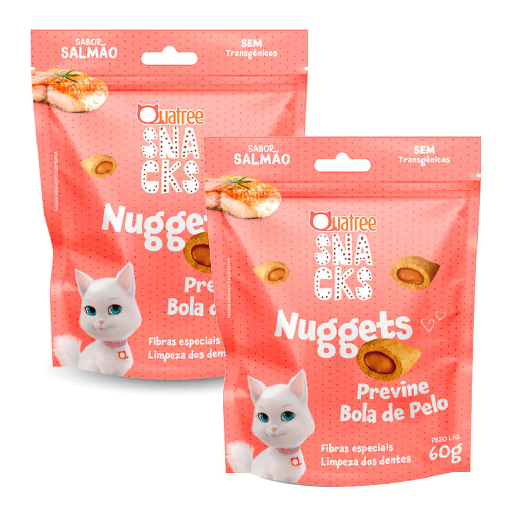 Kit 2 Snacks Quatree Nuggets para Gatos Sabor Salmão 60g