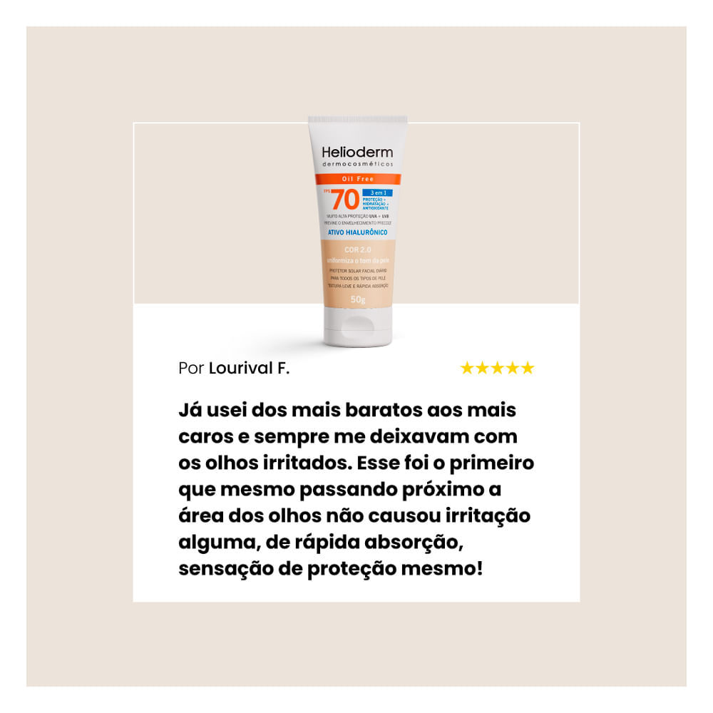 Protetor Solar Facial Helioderm Oil Free 3 em 1 FPS 70 Cor Bege Claro 50g