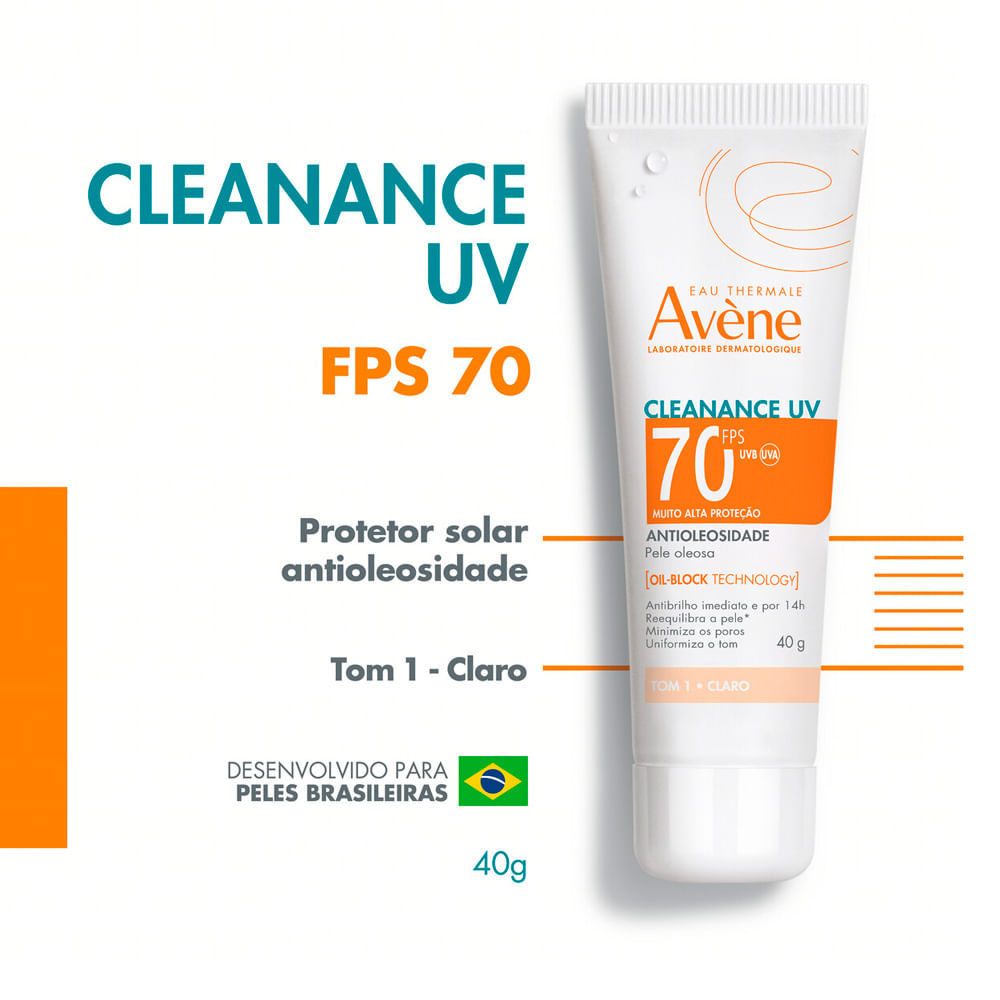 Protetor Solar Avène Cleanance UV FPS70 Tom 1 Claro 40g
