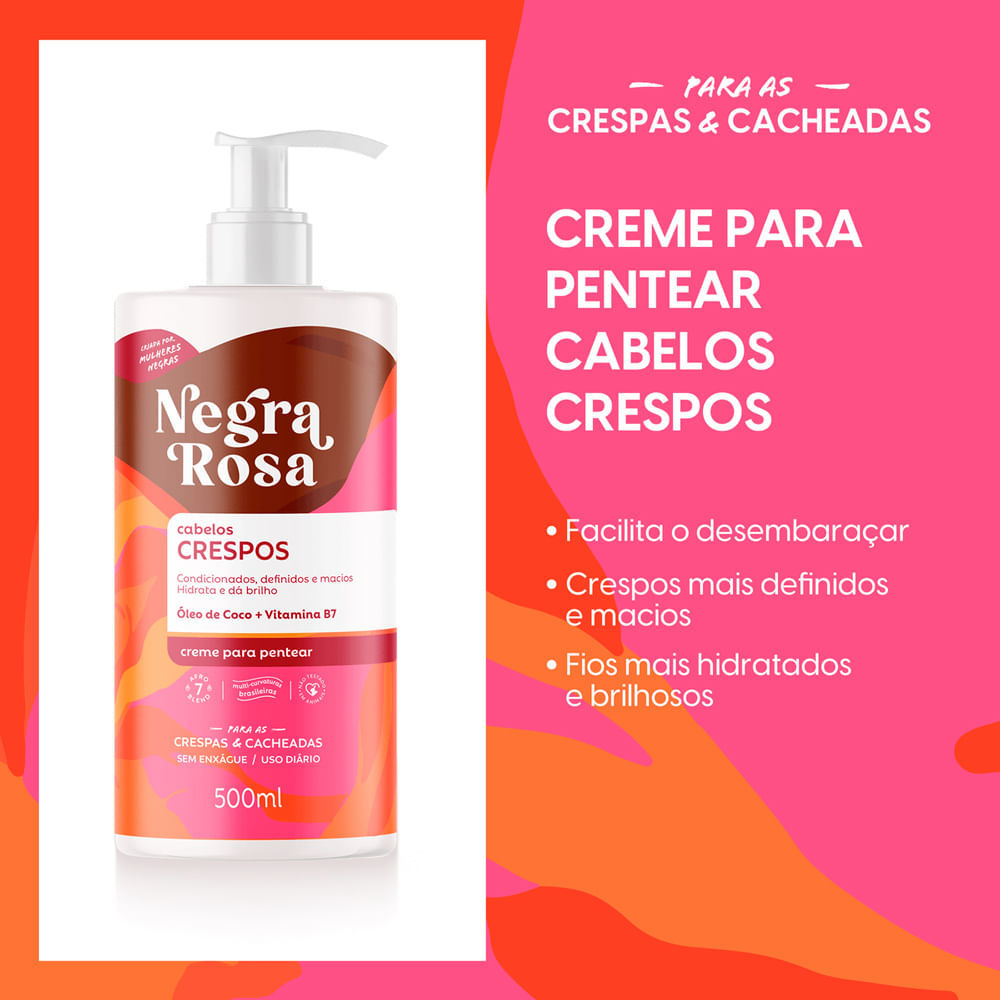 Creme para Pentear Cabelos Crespos Negra Rosa Crespas e Cacheadas 500ml