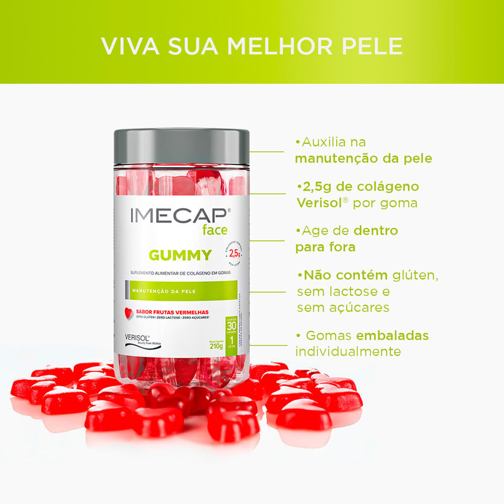 Gummy Imecap Face Sabor Frutas Vermelhas com 30 Unidades