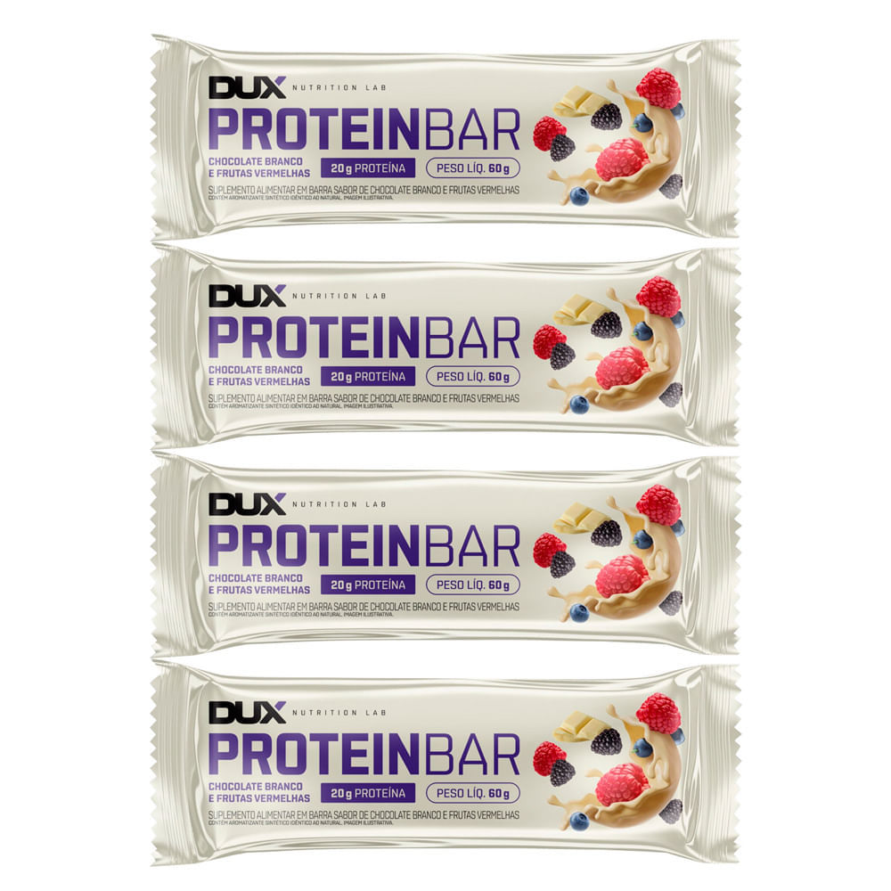 Kit 4 Barra de Proteína Dux Proteinbar Chocolate Branco e Frutas Vermelhas 20g de Proteína com 60g