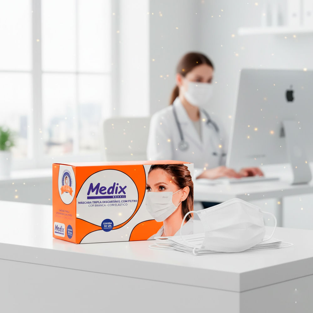 Máscara Descartável Medix Tripla Elástico com Filtro 50 Unidades