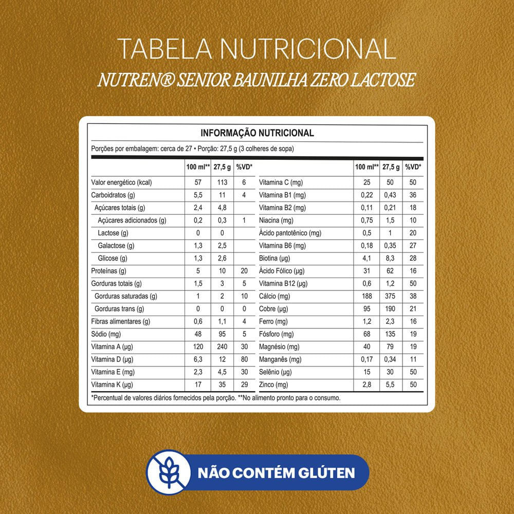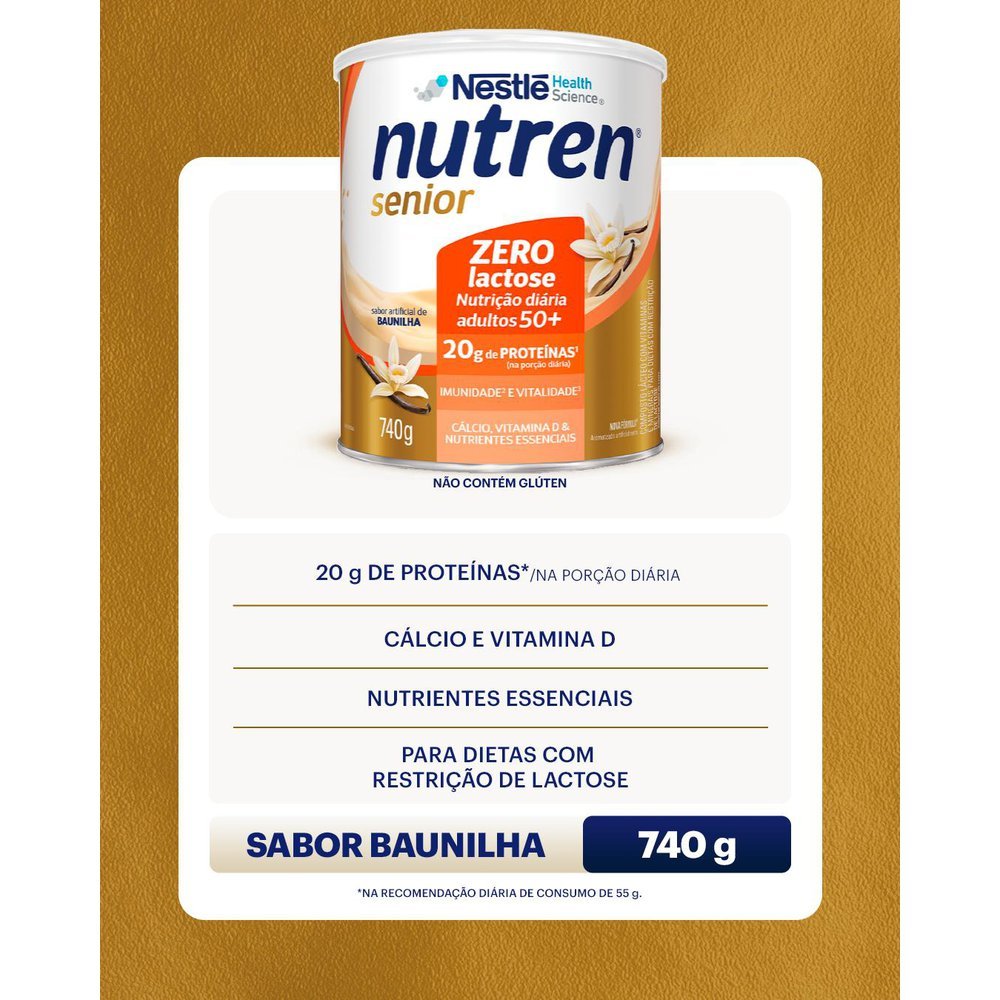 Nutren Senior Complemento Alimentar Baunilha Zero Lactose 740g