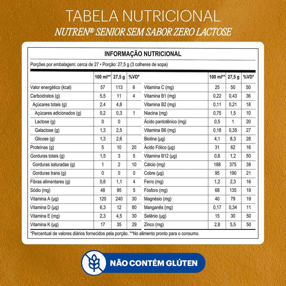Nutren Senior Complemento Alimentar Sem Sabor Zero Lactose 740g