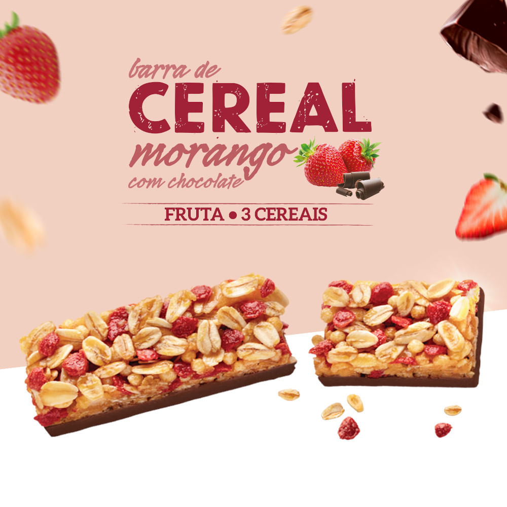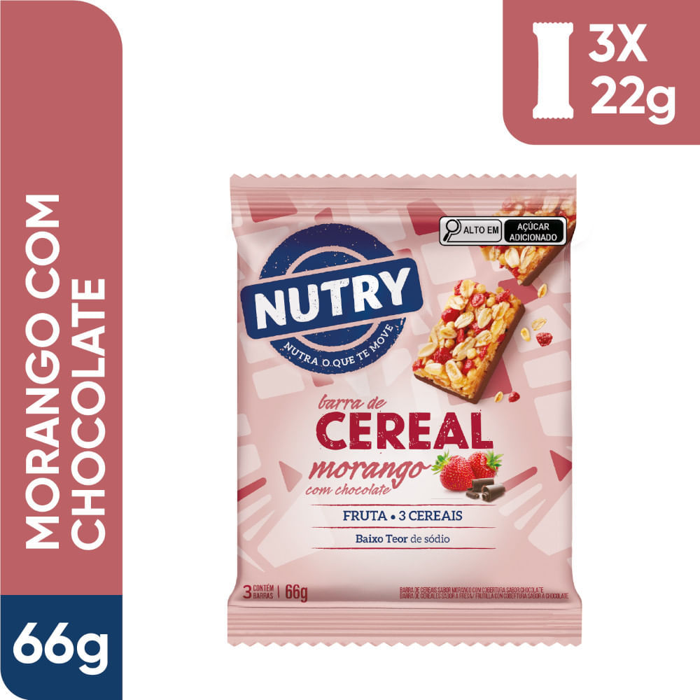 Barra de Cereais Nutry Morango com Chocolate 3 Unidades com 22g Cada