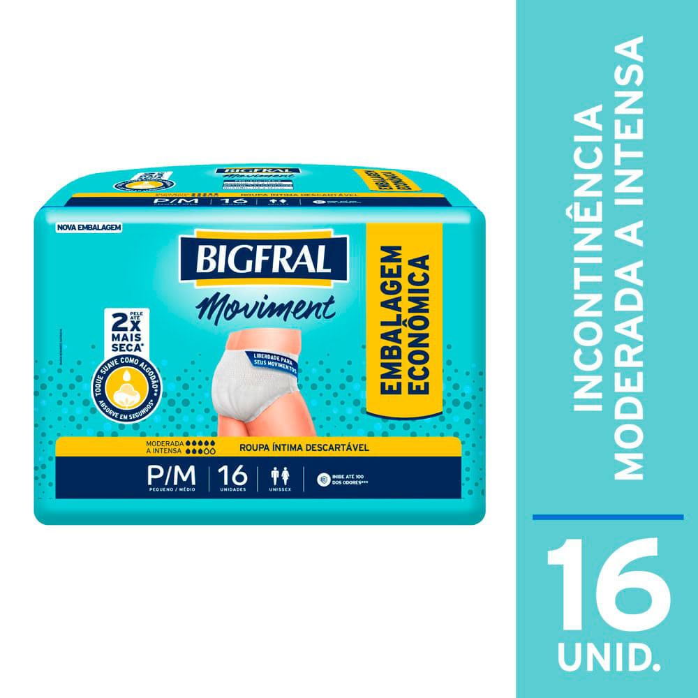 Roupa Íntima Bigfral Moviment P/M 16 Unidades