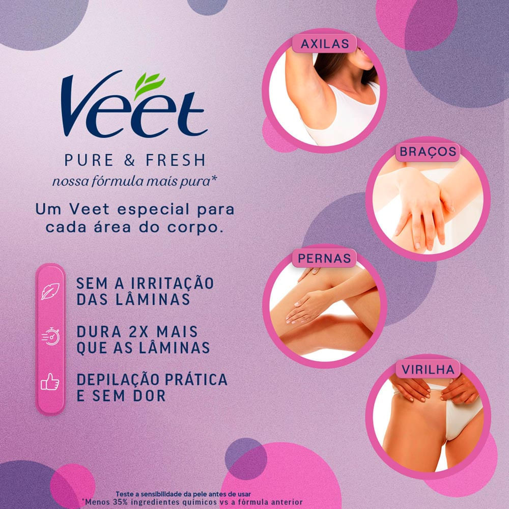 Creme Depilatório Veet Pure & Fresh Pernas e Corpo Pele Delicada 100ml