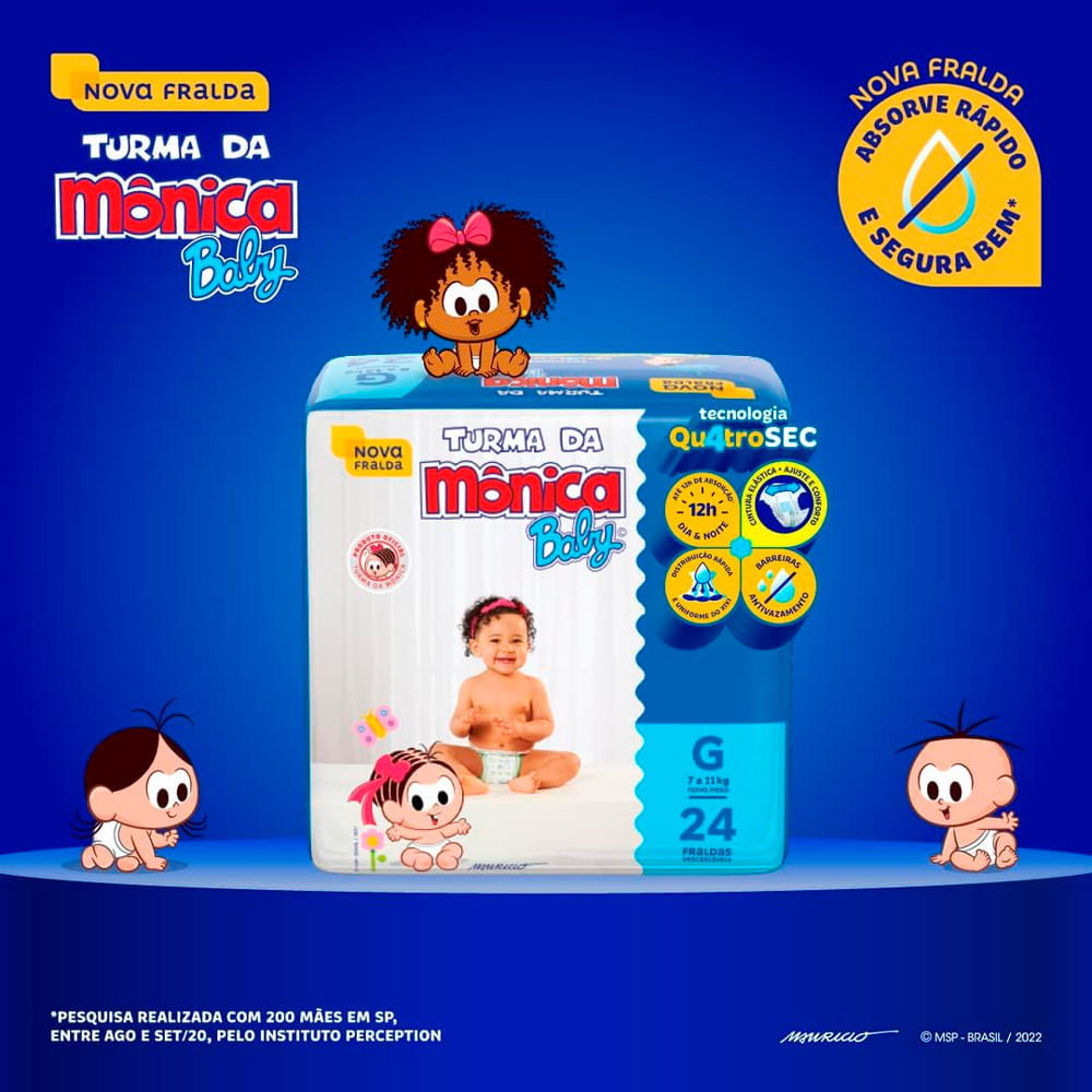 Fralda Turma da Mônica Baby Tamanho G Pacote Jumbo 24 Unidades Descartáveis