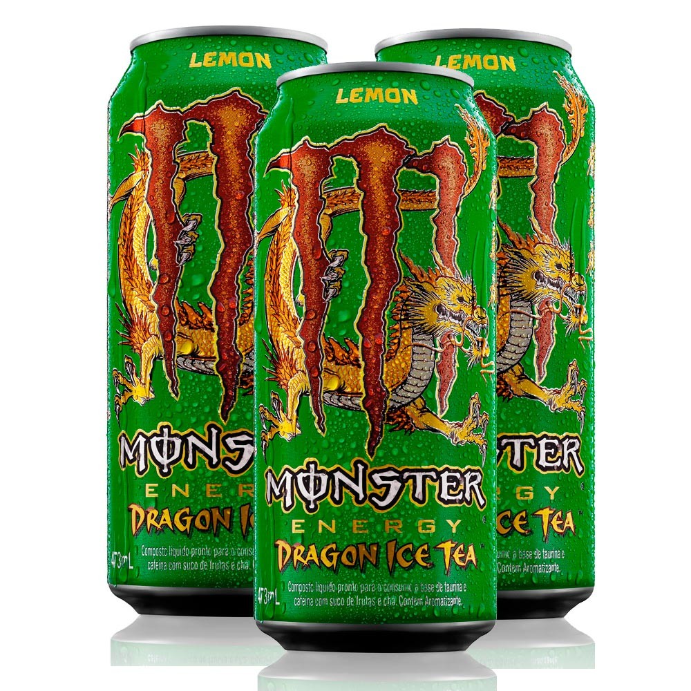 Kit 3 Energético Monster Energy Dragon Ice Tea Lemon 473ml