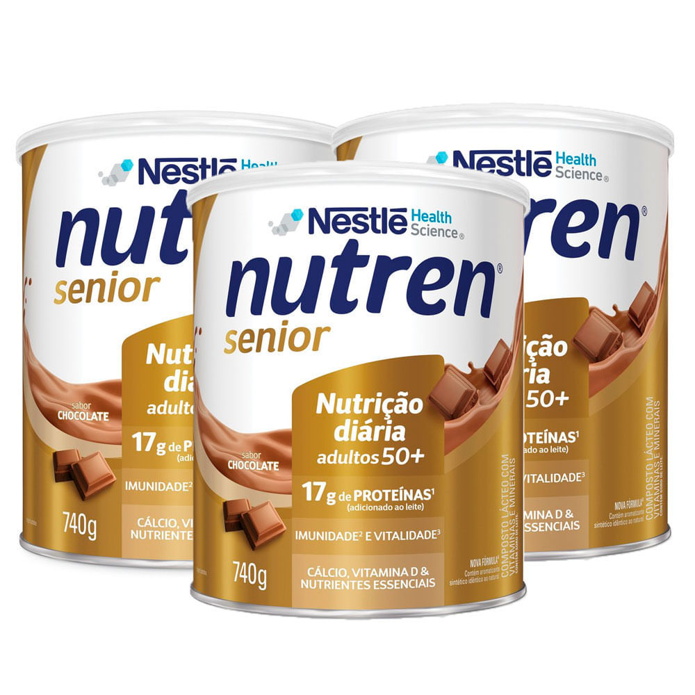 Kit 3 Nutren Senior Complemento Alimentar Chocolate 740g