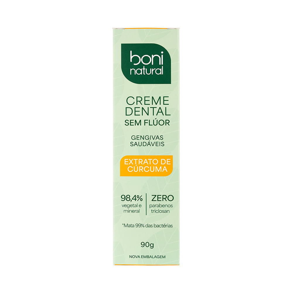 Creme Dental Boni Natural Gengivas Saudáveis Extrato de Cúrcuma Sem Flúor 90g