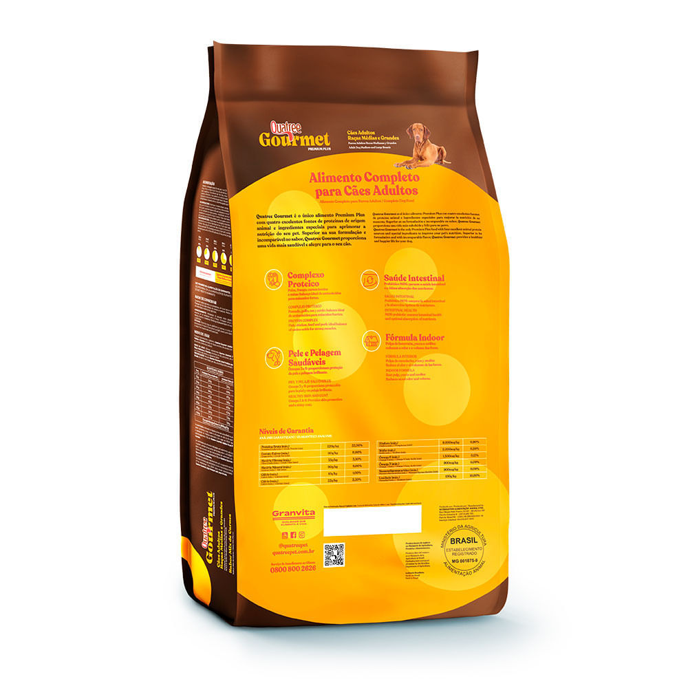 Ração para Cães Quatree Gourmet Adultos Raças Médias e Grandes Livre de Corantes 15Kg